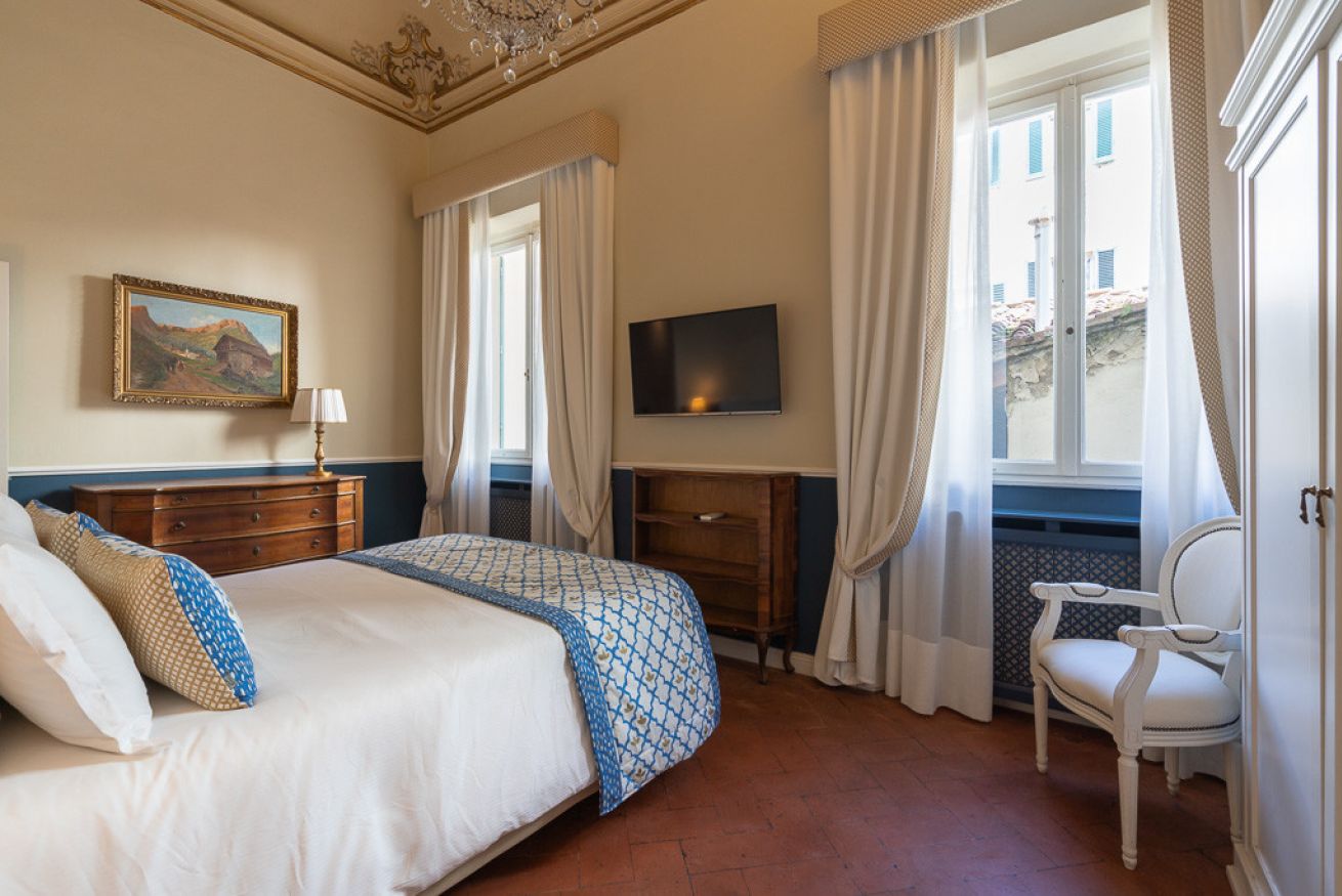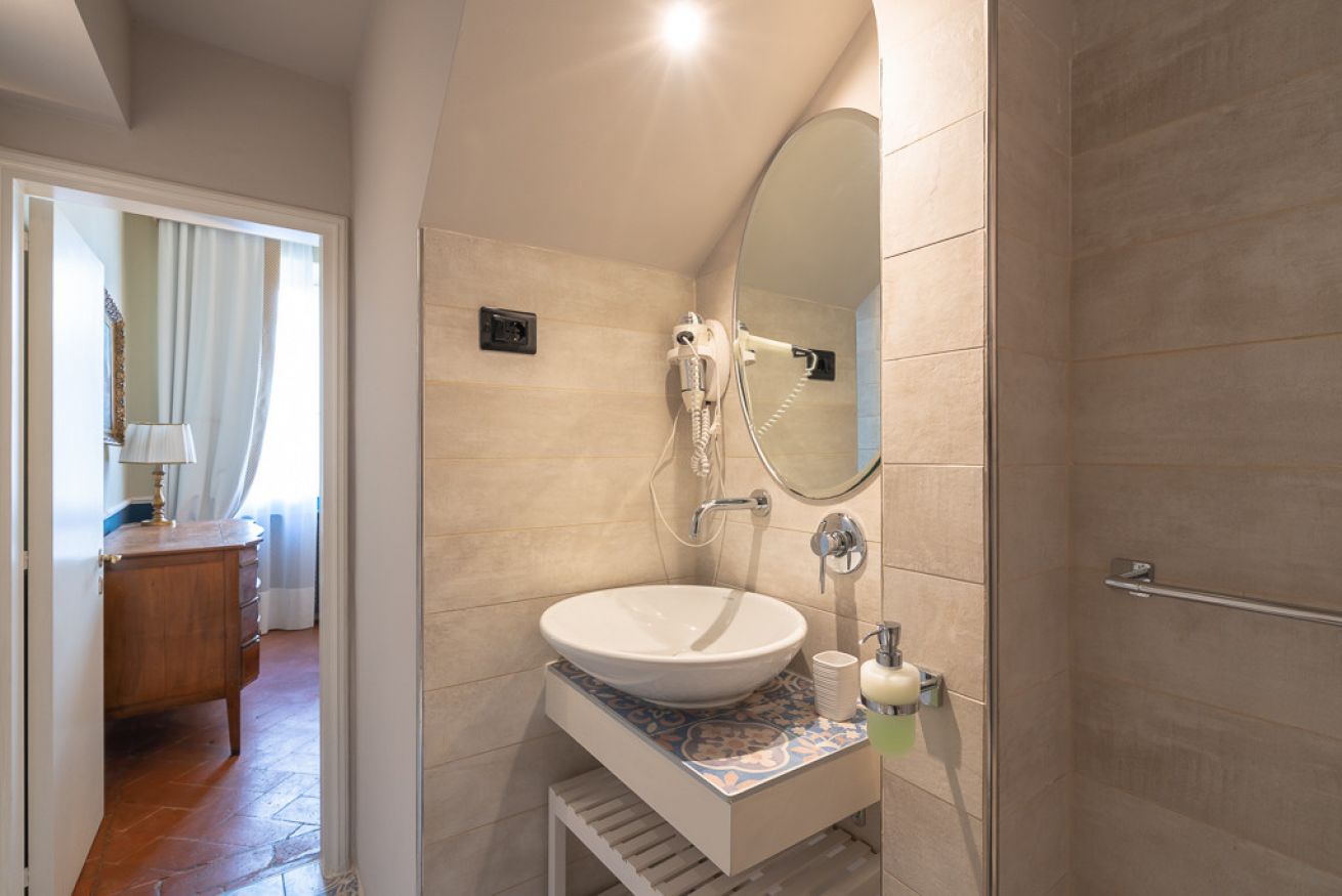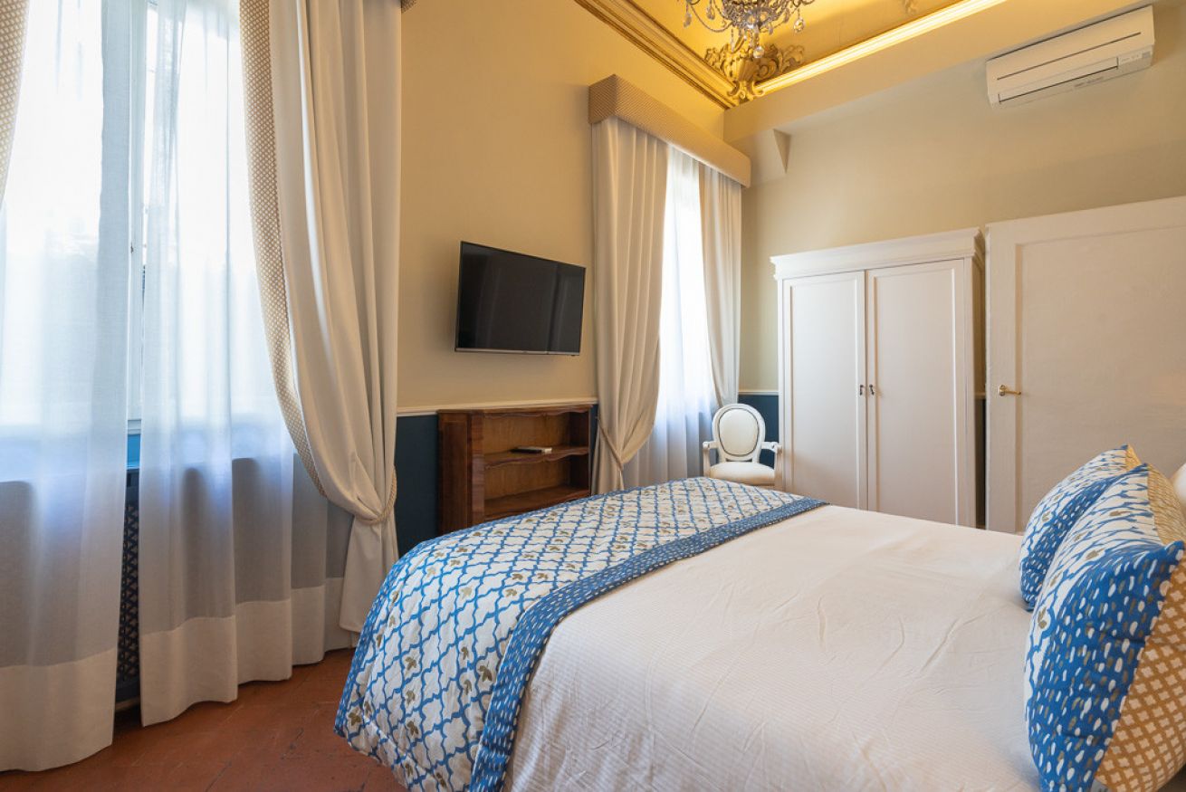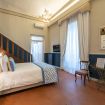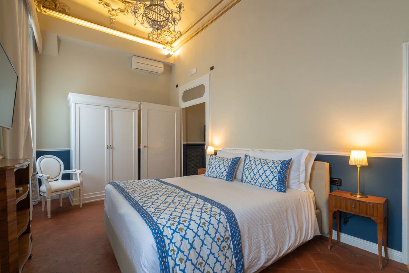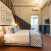 La camera Duomo rappresenta a pieno lo stile rinascimentale fiorentino grazie ai numerosi fregi che impreziosiscono il soffitto a volta ed all’imponente affresco risalente al 1700 che dona incredibile fascino al luogo. La stanza si sviluppa in due ambienti separati da una porta, ciascuno di essi dotato di bagno privato (in totale due bagni) ed una zona soppalco in cui è presente un letto extra che all’occorrenza può accogliere un ospite extra. Al suo interno è possibile usufruire di Tv a schermo piatto LCD, macchina da caffè Nespresso, minibar, phon e prodotti da bagno. I letti sono dotati di materasso matrimoniale con aggiunta di materasso “topper memory” che garantisce un riposo ancor più confortevole.