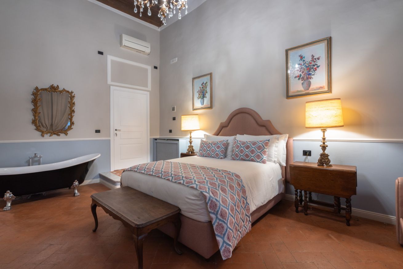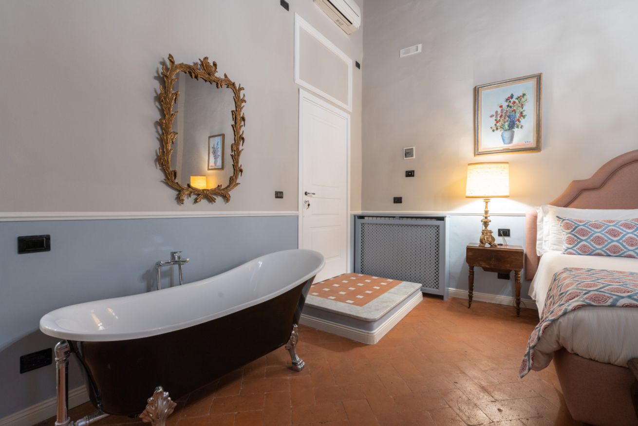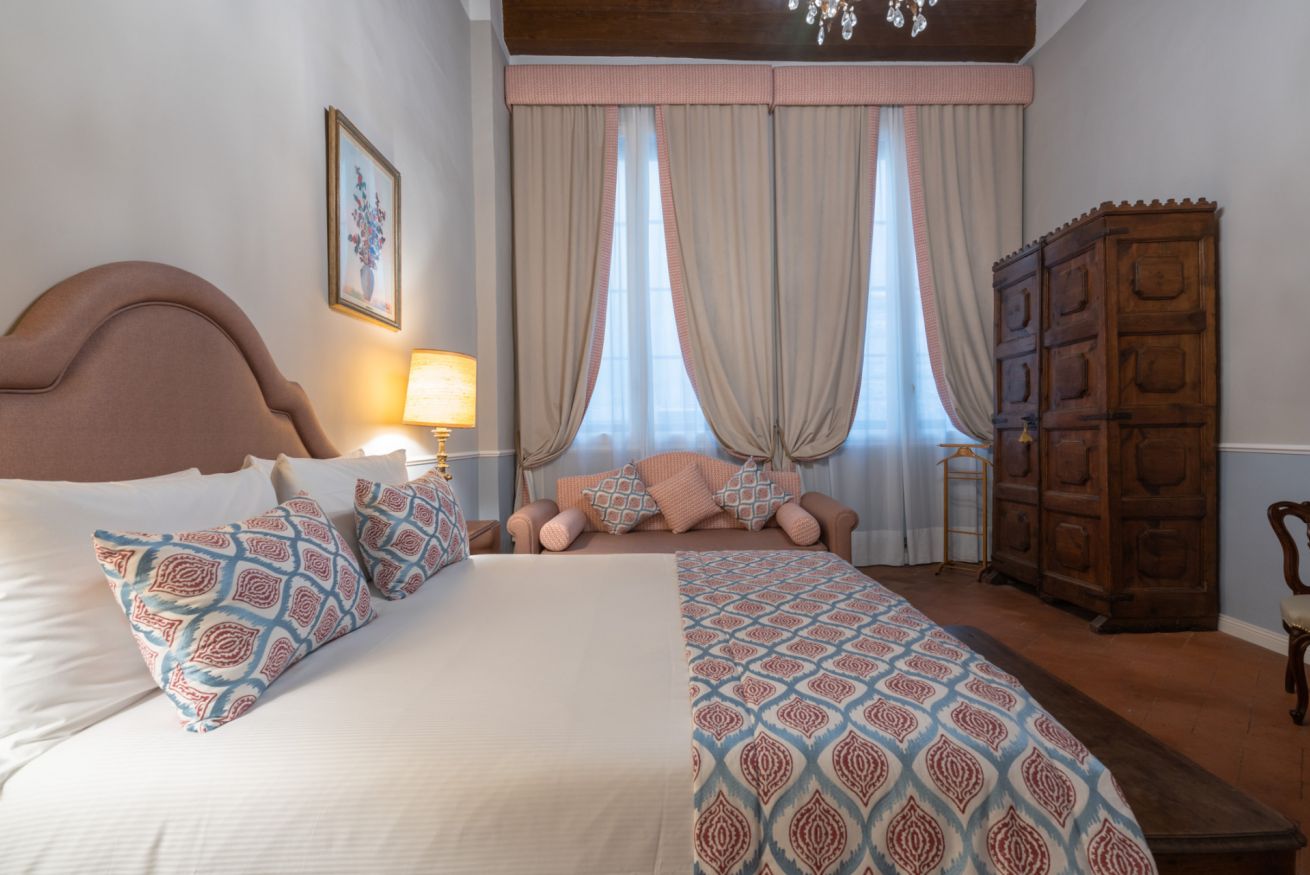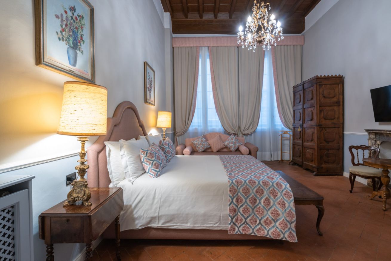 La camera Signoria ricrea lo stile tipicamente fiorentino grazie all’antico soffitto composto da travi a cassettone in legno, pavimento in cotto e grandi finestre che si affacciano sulla famosa Borgo Albizi. La stanza è dotata di tutti i comfort e dispone di bagno privato. Durante il soggiorno è possibile usufruire di Tv a schermo piatto LCD, macchina da caffè Nespresso, Minibar, Phon e prodotti da bagno. Il letto è dotato di materasso matrimoniale con aggiunta di materasso “topper memory” che garantisce un riposo ancor più confortevole. È possibile aggiungere un letto extra.