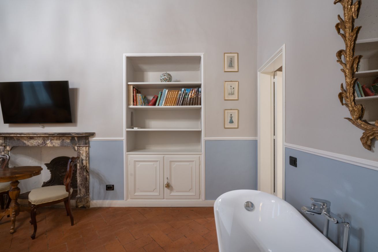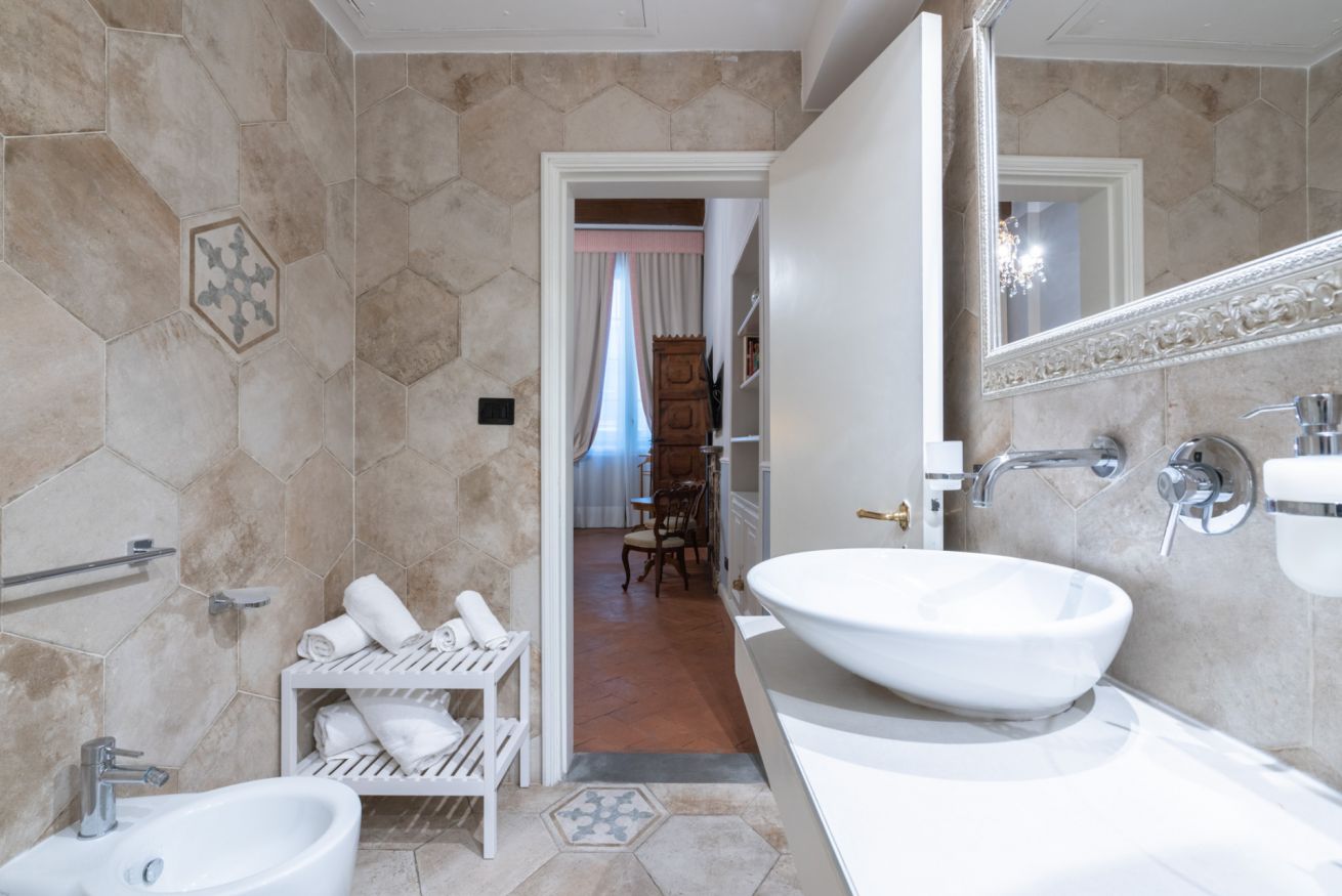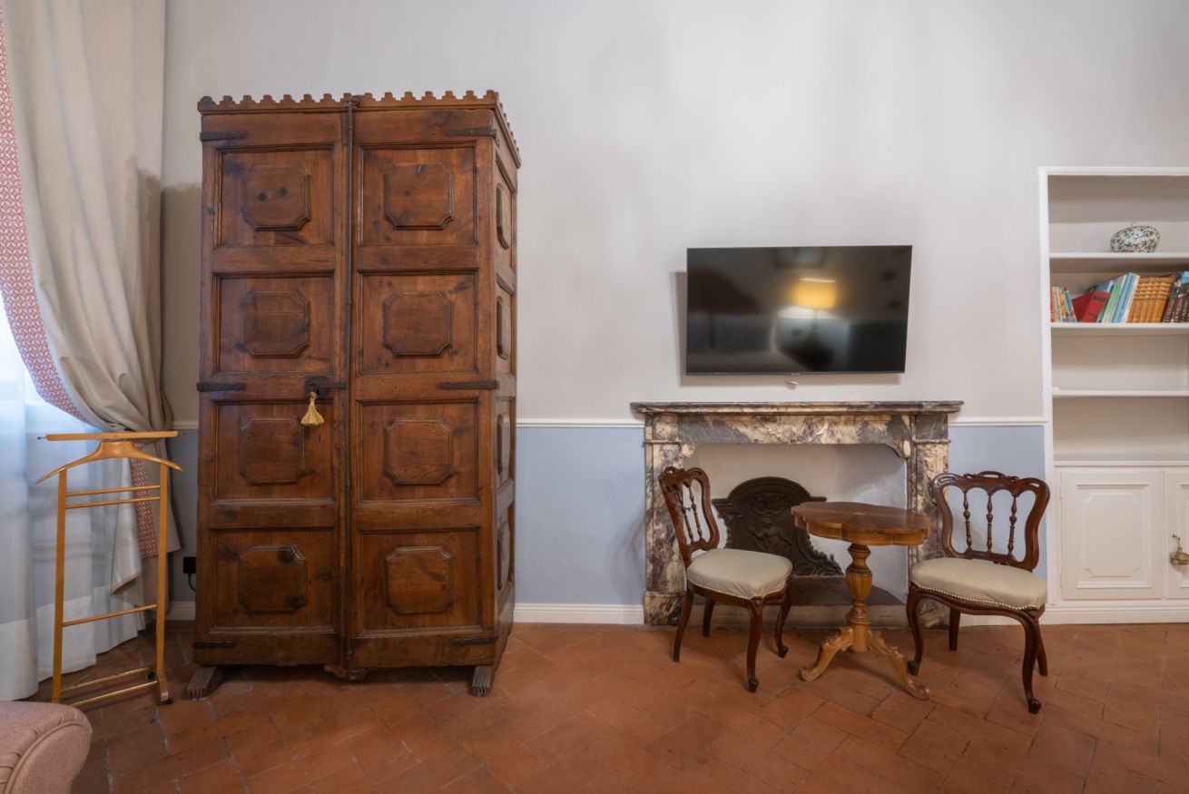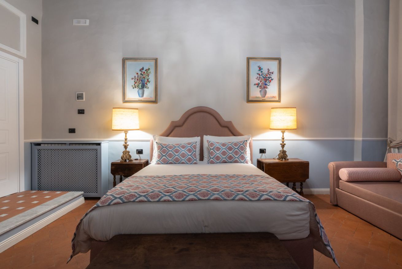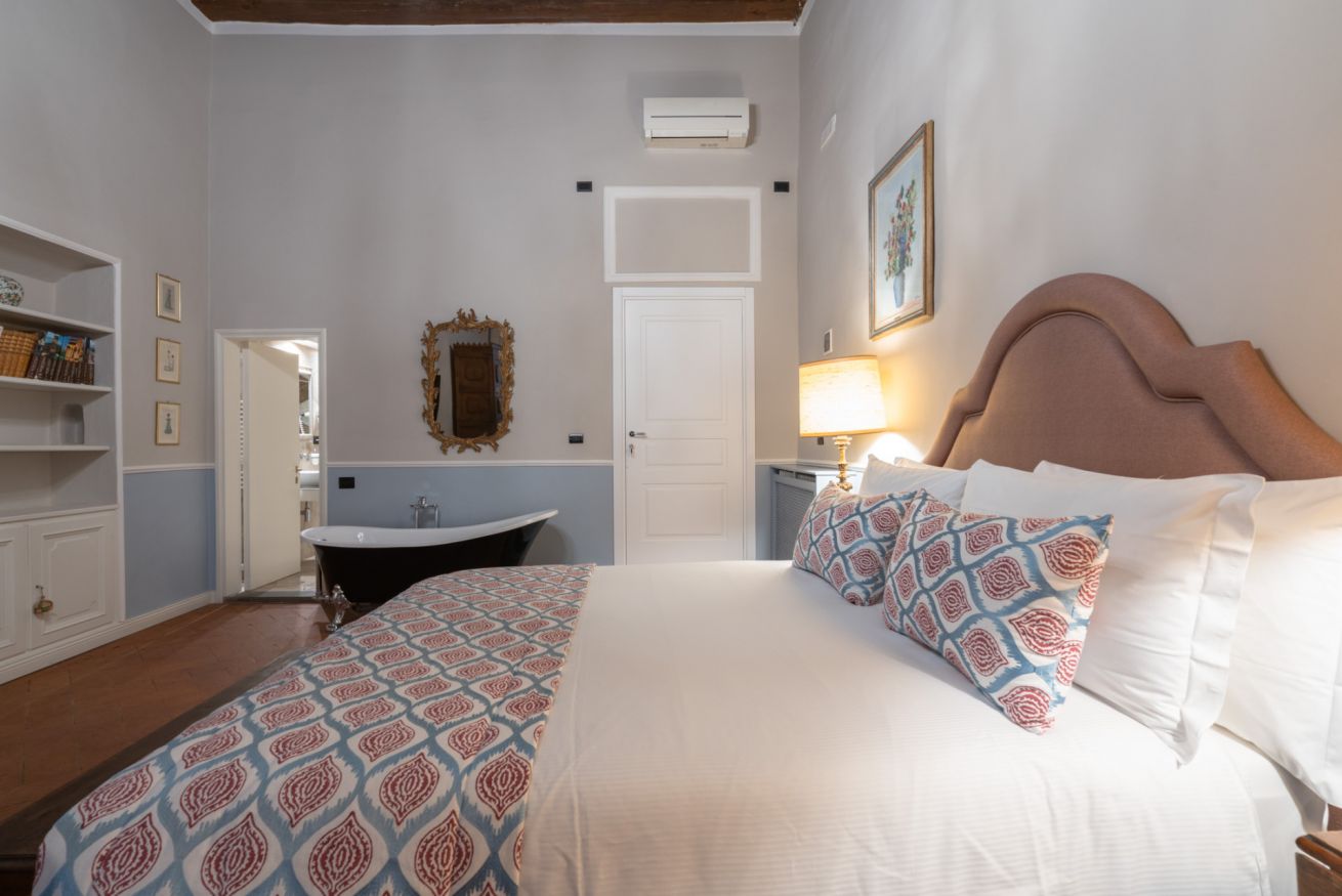 La camera Signoria ricrea lo stile tipicamente fiorentino grazie all’antico soffitto composto da travi a cassettone in legno, pavimento in cotto e grandi finestre che si affacciano sulla famosa Borgo Albizi. La stanza è dotata di tutti i comfort e dispone di bagno privato. Durante il soggiorno è possibile usufruire di Tv a schermo piatto LCD, macchina da caffè Nespresso, Minibar, Phon e prodotti da bagno. Il letto è dotato di materasso matrimoniale con aggiunta di materasso “topper memory” che garantisce un riposo ancor più confortevole. È possibile aggiungere un letto extra.