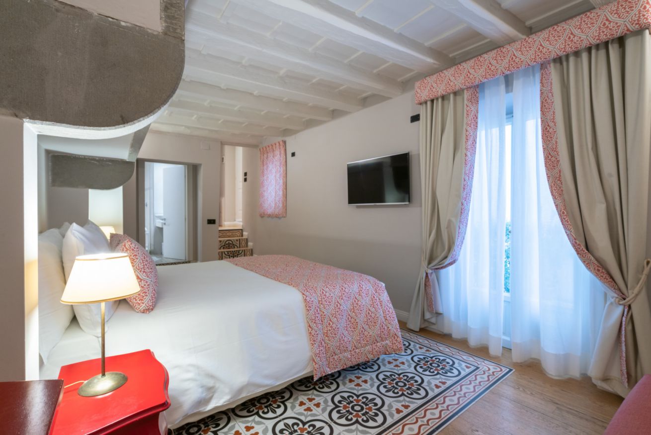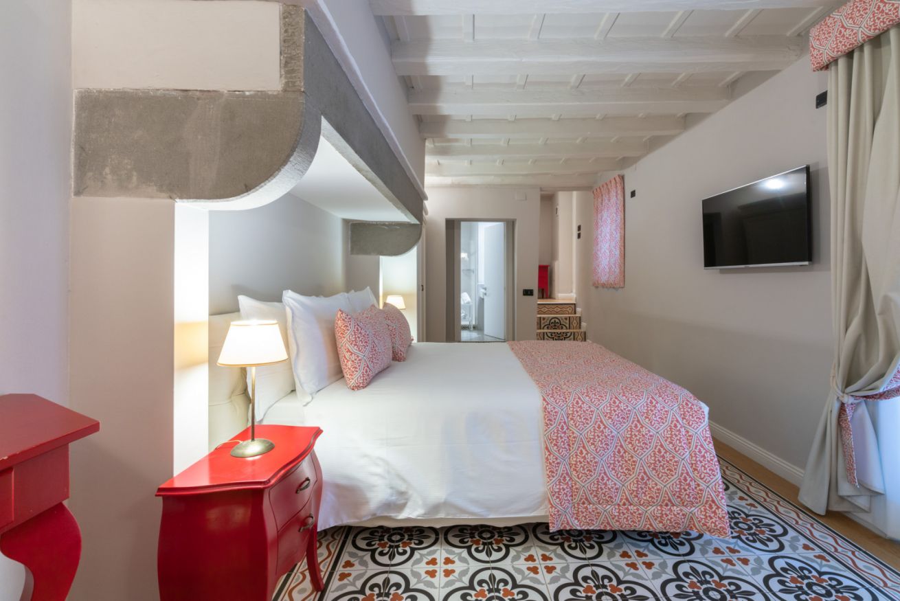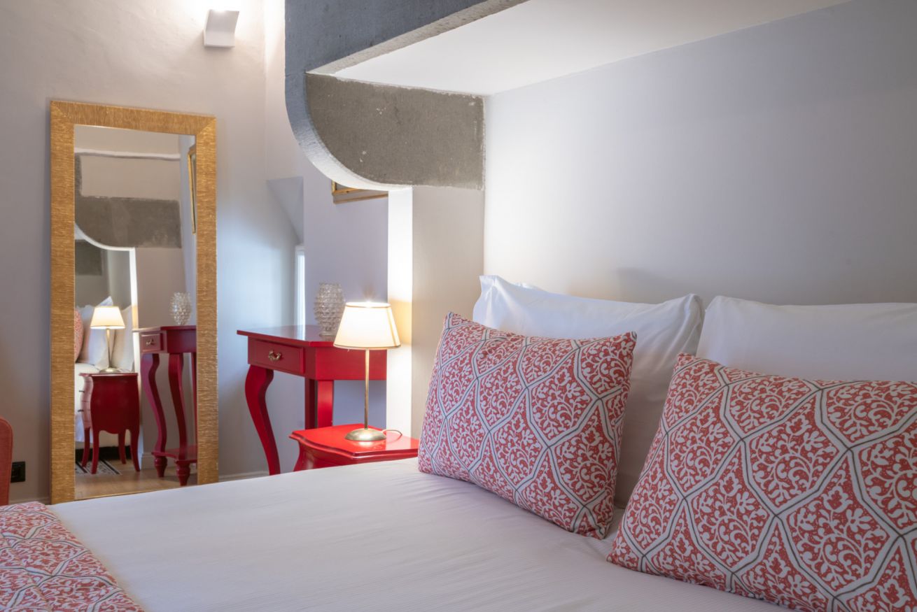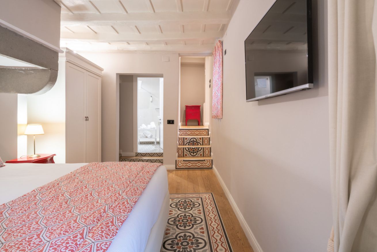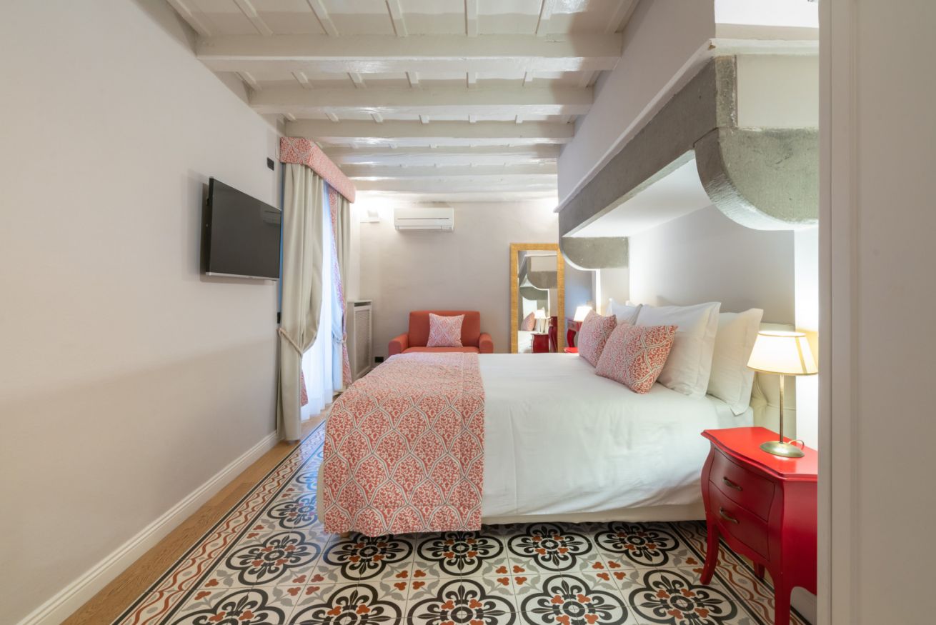 La camera Uffizi prende vita all’interno della antica cucina della dimora del cardinale. Il letto matrimoniale è incorniciato da una fornace del tempo realizzata in pietra che conferisce al luogo particolare fascino storico. La stanza è dotata di tutti i comfort e dispone di bagno privato. Durante il soggiorno è possibile usufruire di Tv a schermo piatto LCD, macchina da caffè Nespresso, Minibar, Phon e prodotti da bagno. Il letto è dotato di materasso matrimoniale con aggiunta di materasso “topper memory” che garantisce un riposo ancor più confortevole. È presente una poltrona letto che all’occorrenza può accogliere un ospite extra.